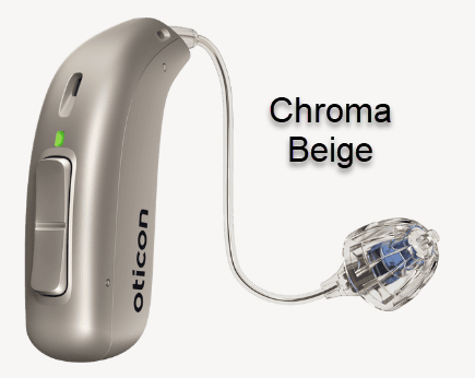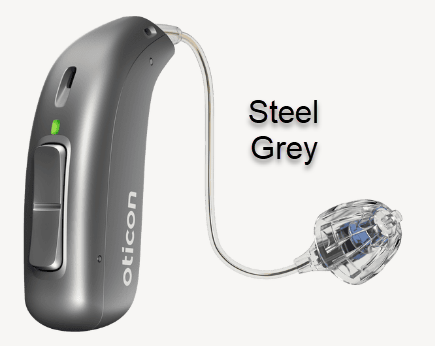 Oticon Real is available in various colours; Terracotta, Chestnut Brown, Chroma Beige, Diamond Black, Olive Green (MiniRITE R only), Pink, Silver Grey, and Steel Grey.