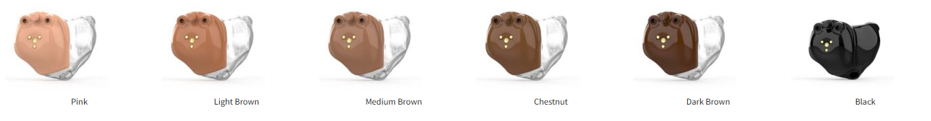 ITC and ITE moders are available in: pink, light brown, medium brown, chestnut, dark brown and black.